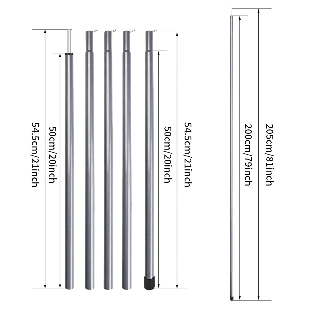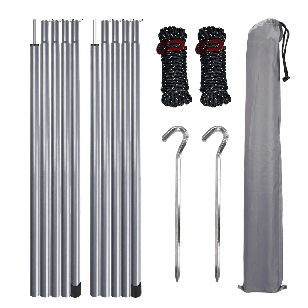 The poles can be used as tent headroom porch poles, tarp poles, car awning poles, beach shelter poles, sunshade poles, awning poles, windbreaker poles, suitable for outdoor camping, wide lawn, seaside beaches, etc.