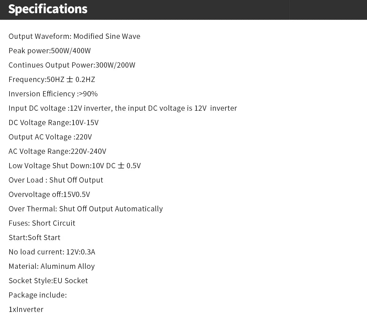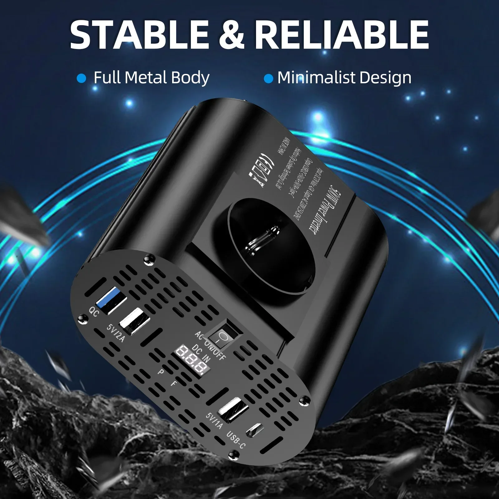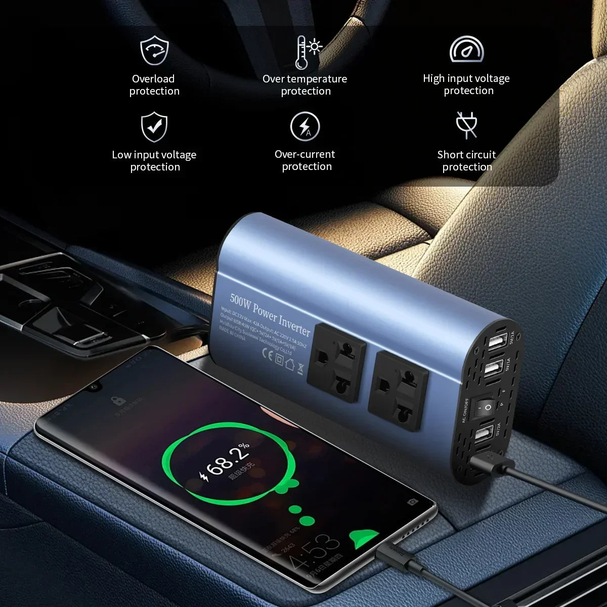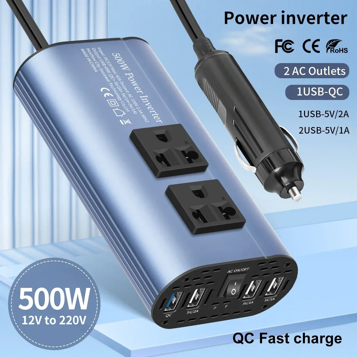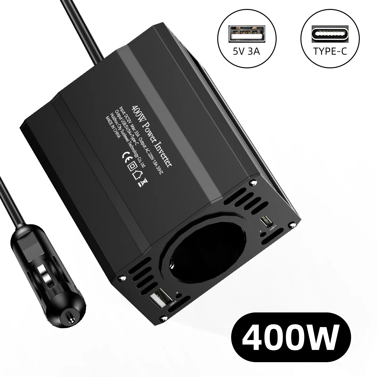 400 W/500 W Auto-Wechselrichter DC 12 V auf AC 220 V Konverter, 3 USB 2.0 und 1 USB QC3.0 Steckdose nach europäischem Standard