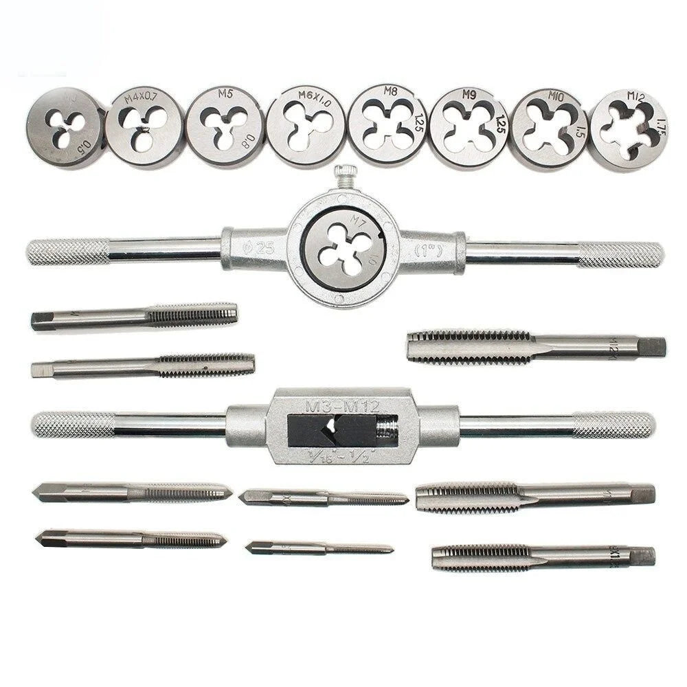 8/12/20 Stück metrische Handgewindebohrer- und Matrizenset M3-M12 Schraubgewindestopfen gerade Kegelreibahlenwerkzeuge
