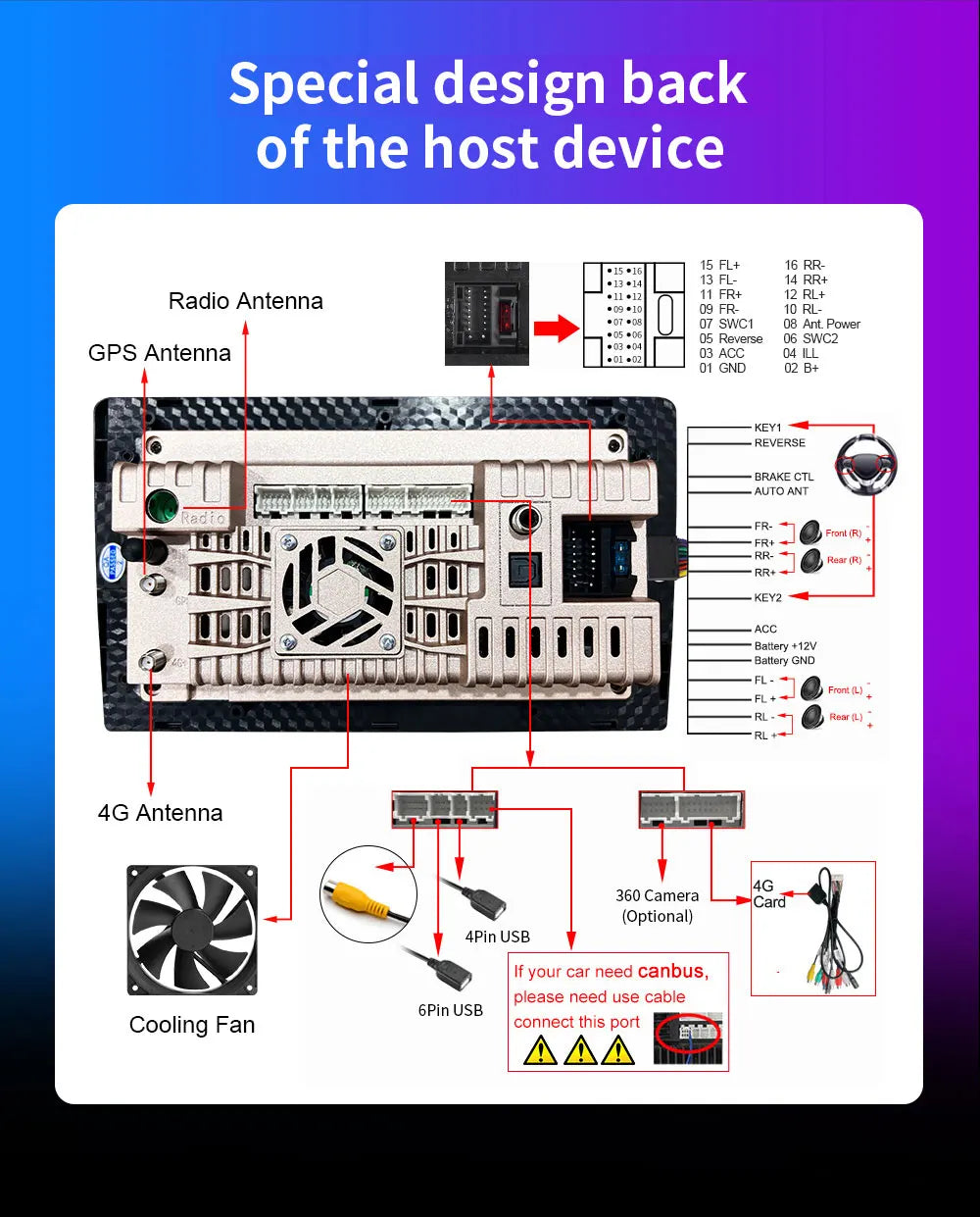 Spezielle Eigenschaften: Gebaut- lautsprecher/Mikrofon,Wifi-funktion,Unterstützung der Lenkradsteuerung,Unterstützung 3g-netz,Unterstützung 4G-Netz,Unterstützung can-bus,Integriertes GPS,Ladegerät,Handy,Spieler MP3,DSP,Carplay,Android Auto,Umkehr Eingang,Split-Screen