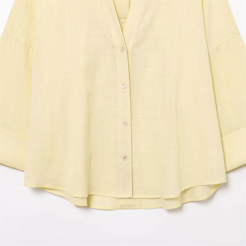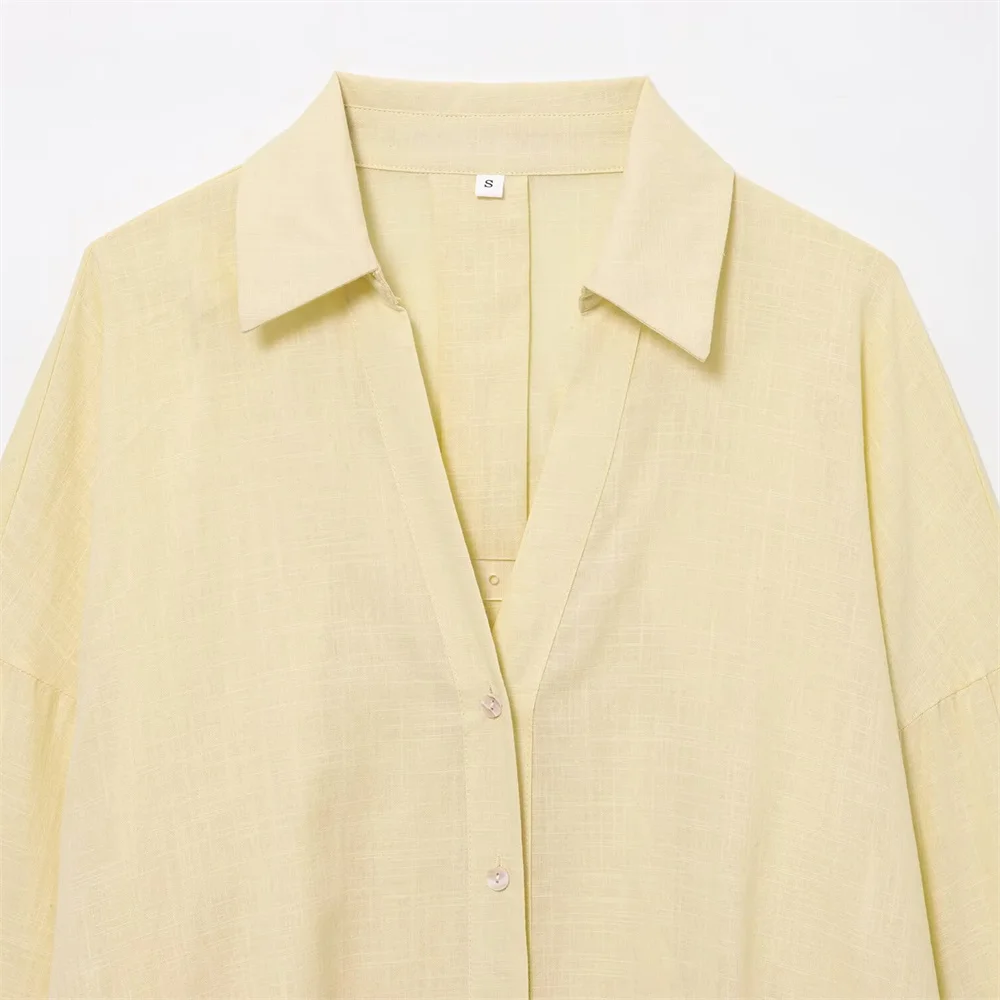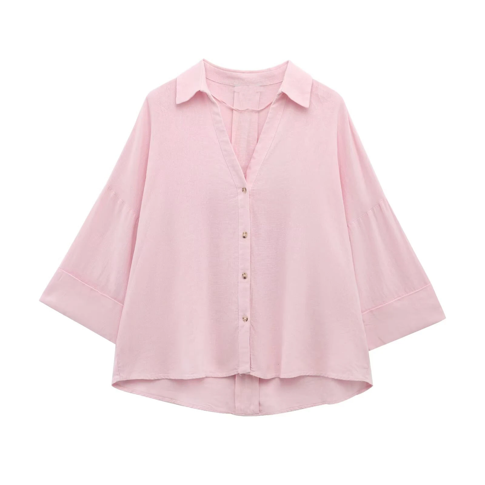 Damenhemd mit Kragen und weiten Ärmeln, schlichtes und lässiges Temperament-Sommerhemd im neuen Stil