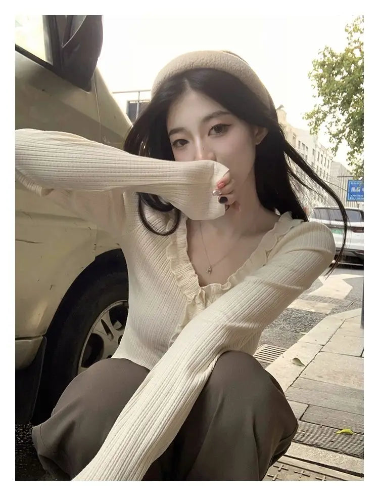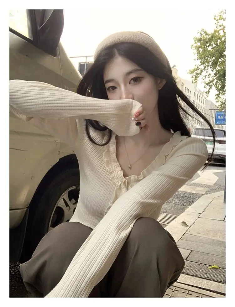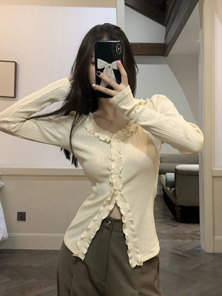 Dünne Hemden Frauen Langarm Frühling Elegante Büro Dame Vintage Rüschen Ziemlich Design Chic Gemütliche Tops Temperament Einfache Beliebt