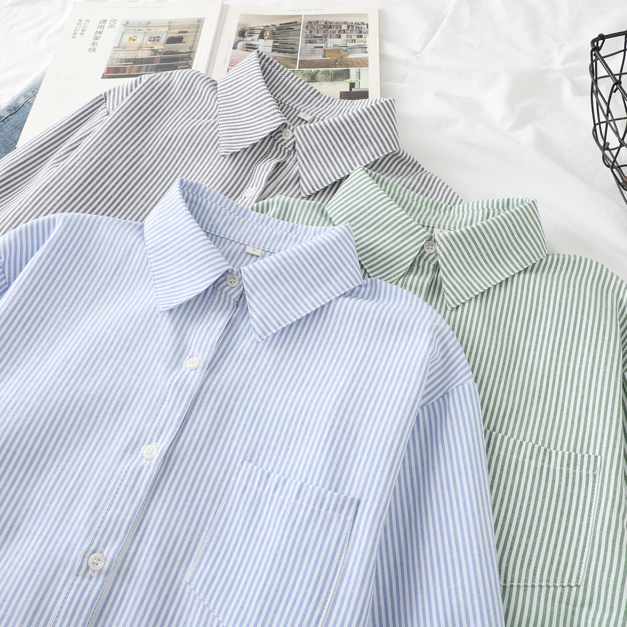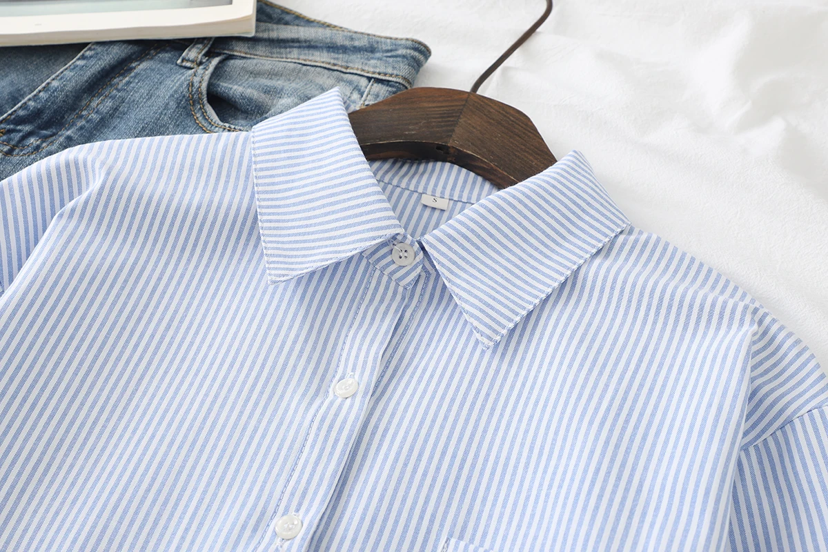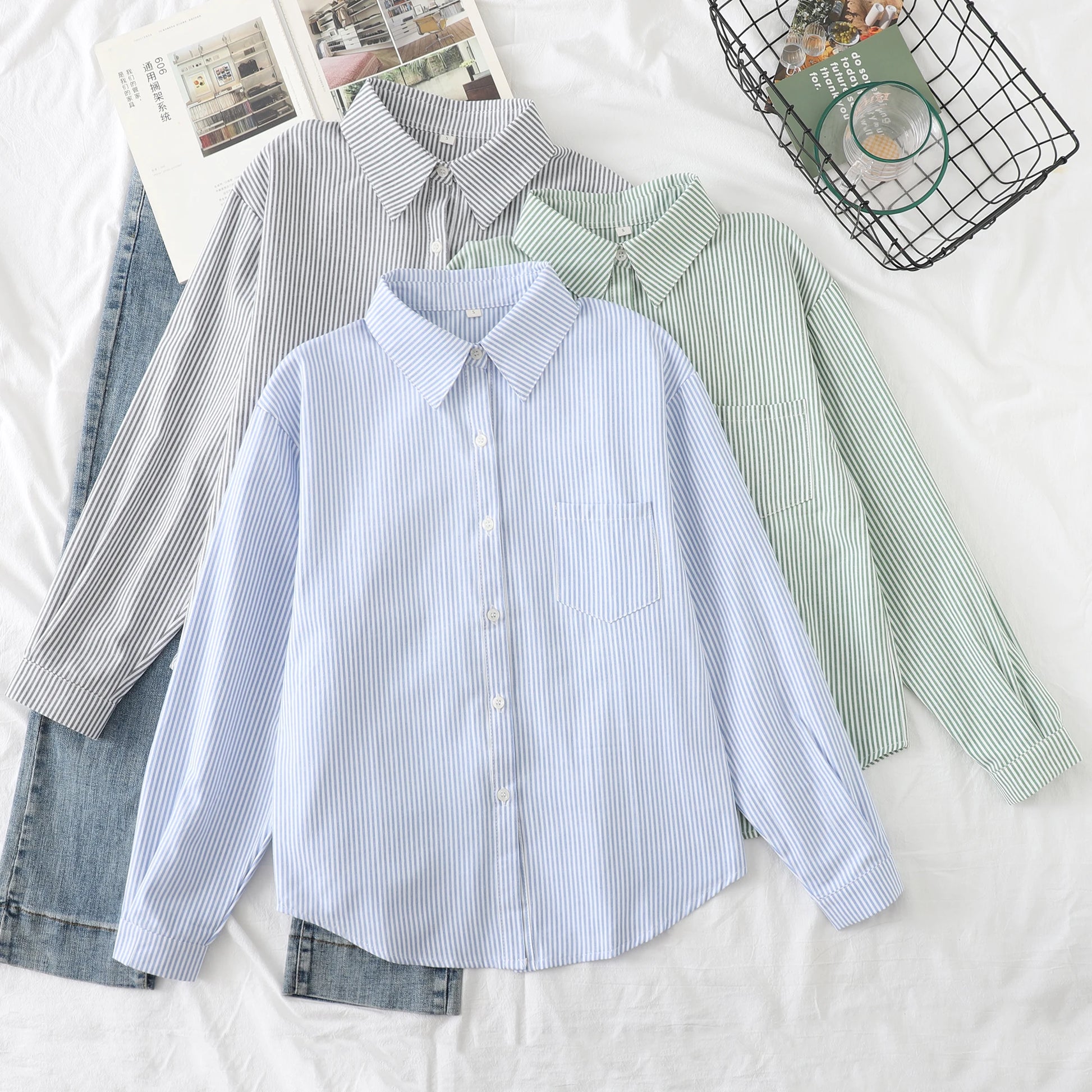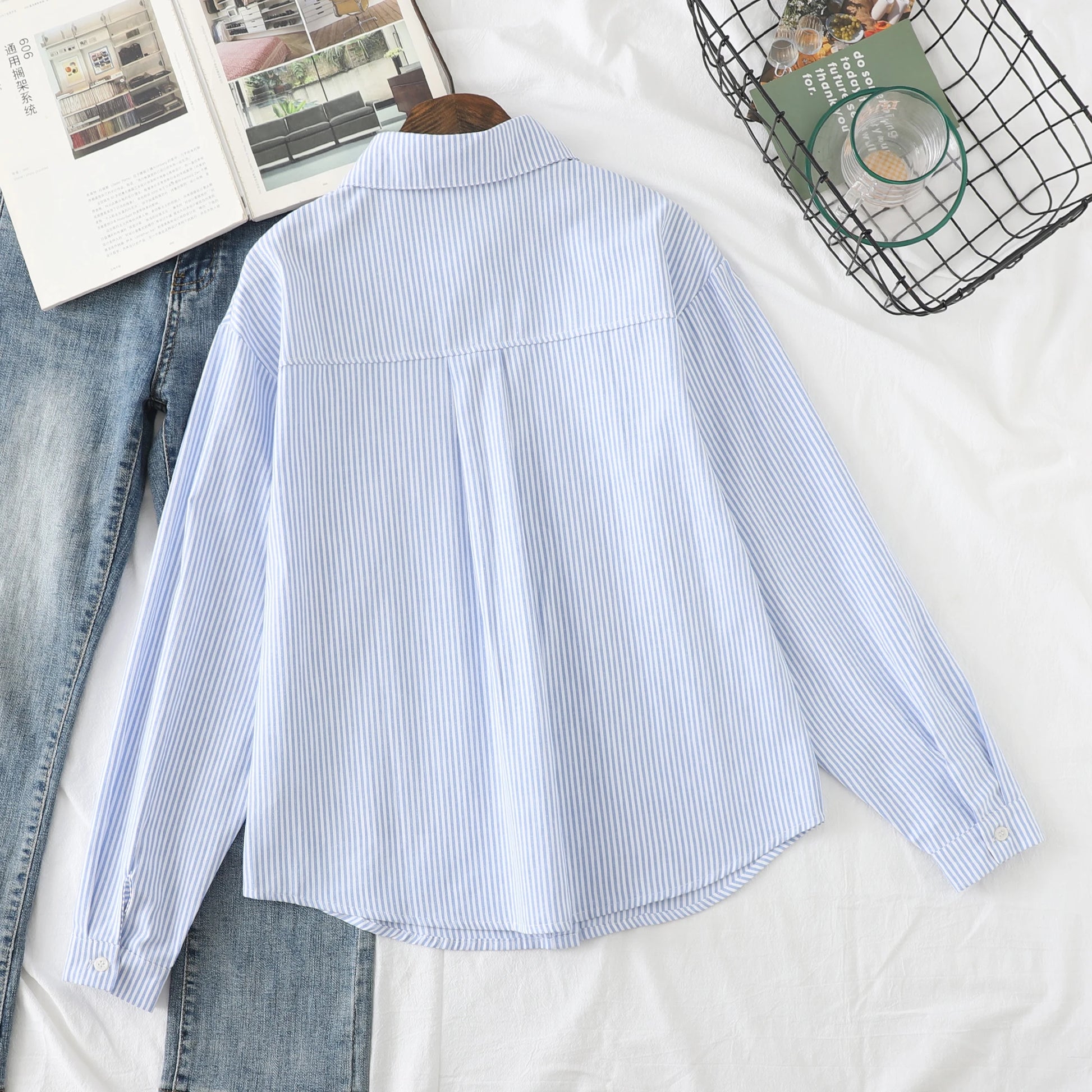 Einfache weiß blau rot gestreifte Hemd Frauen Frühling neue weibliche lässige Langarm Blusen und Tops Mode Damen Kleidung