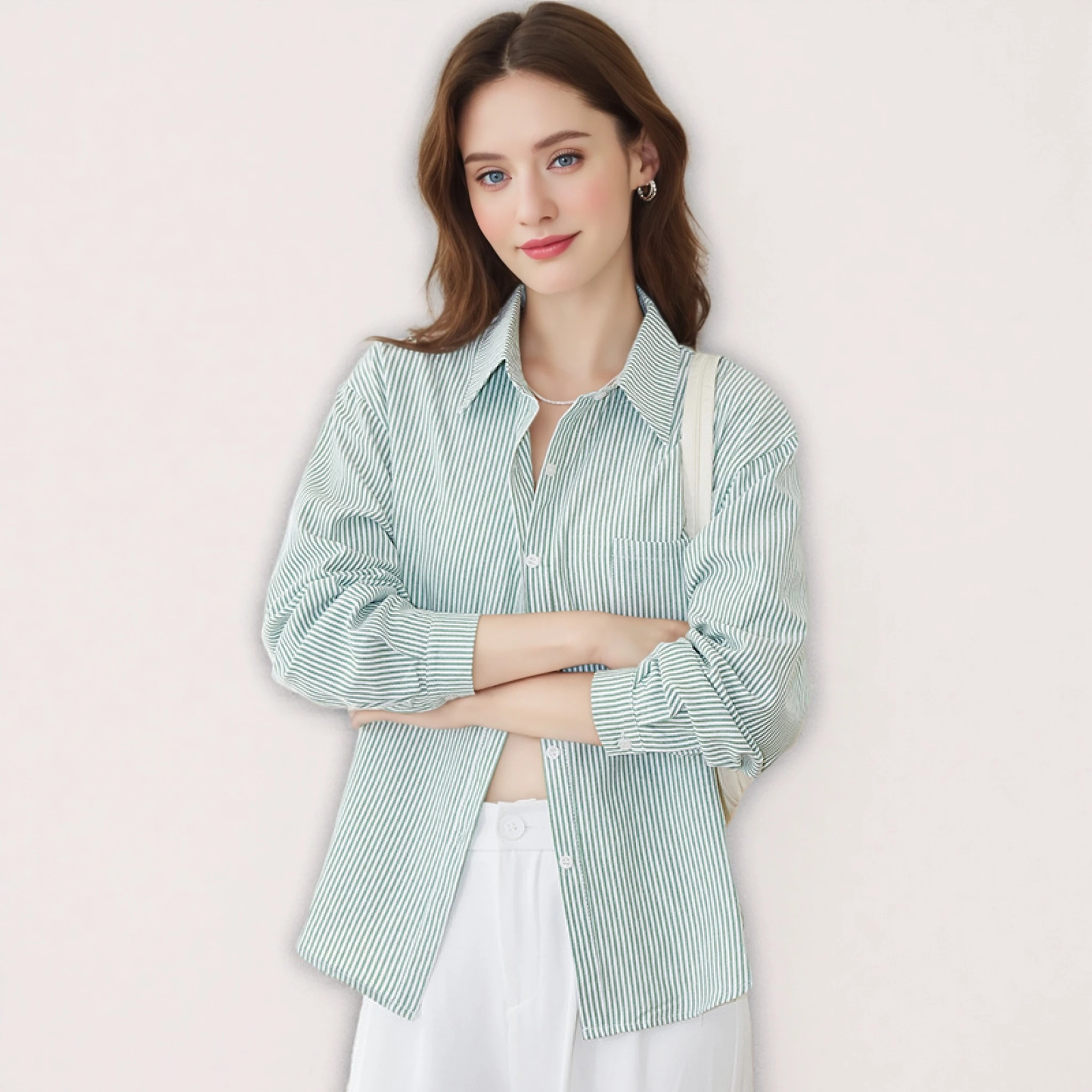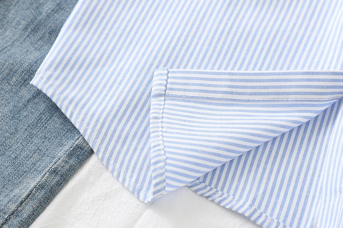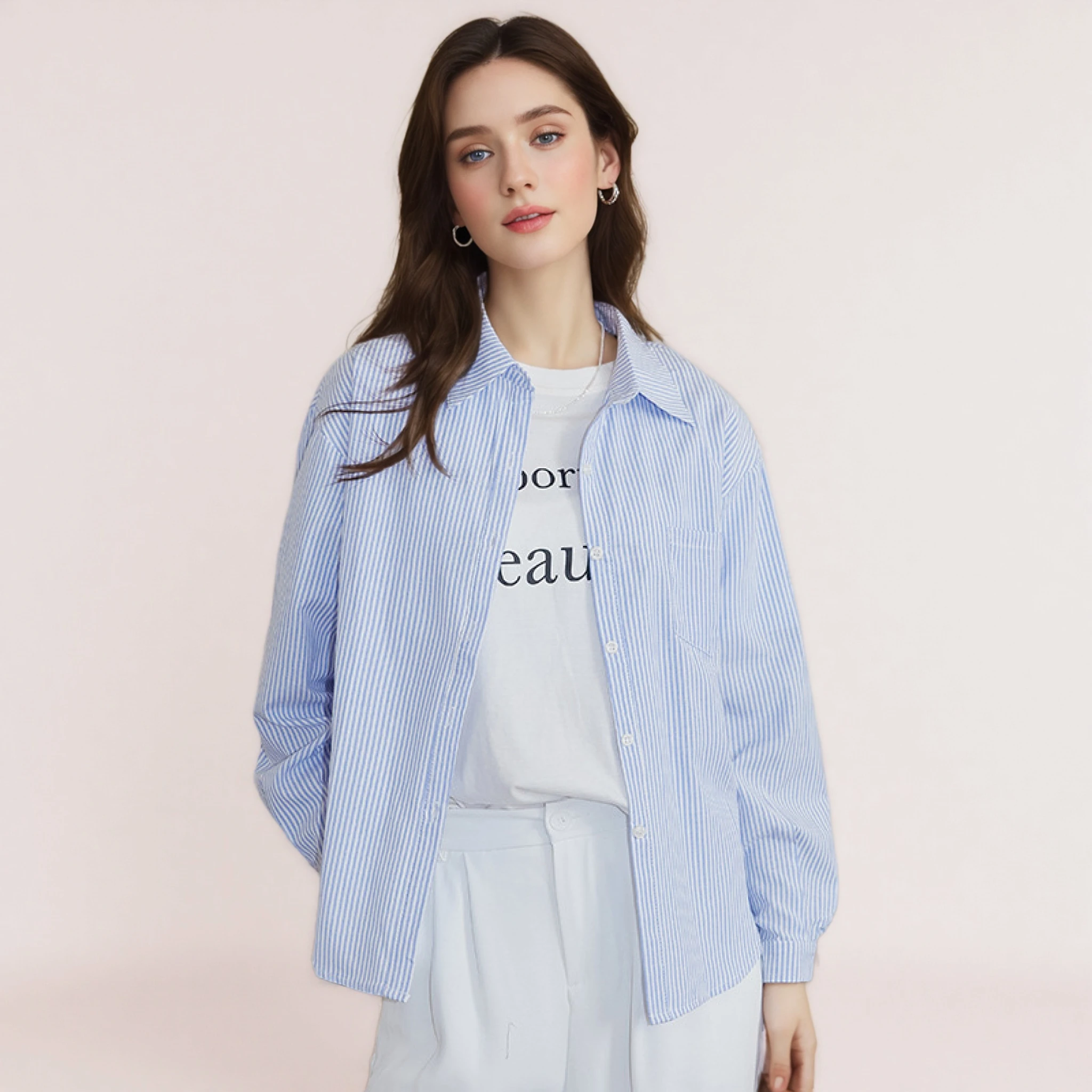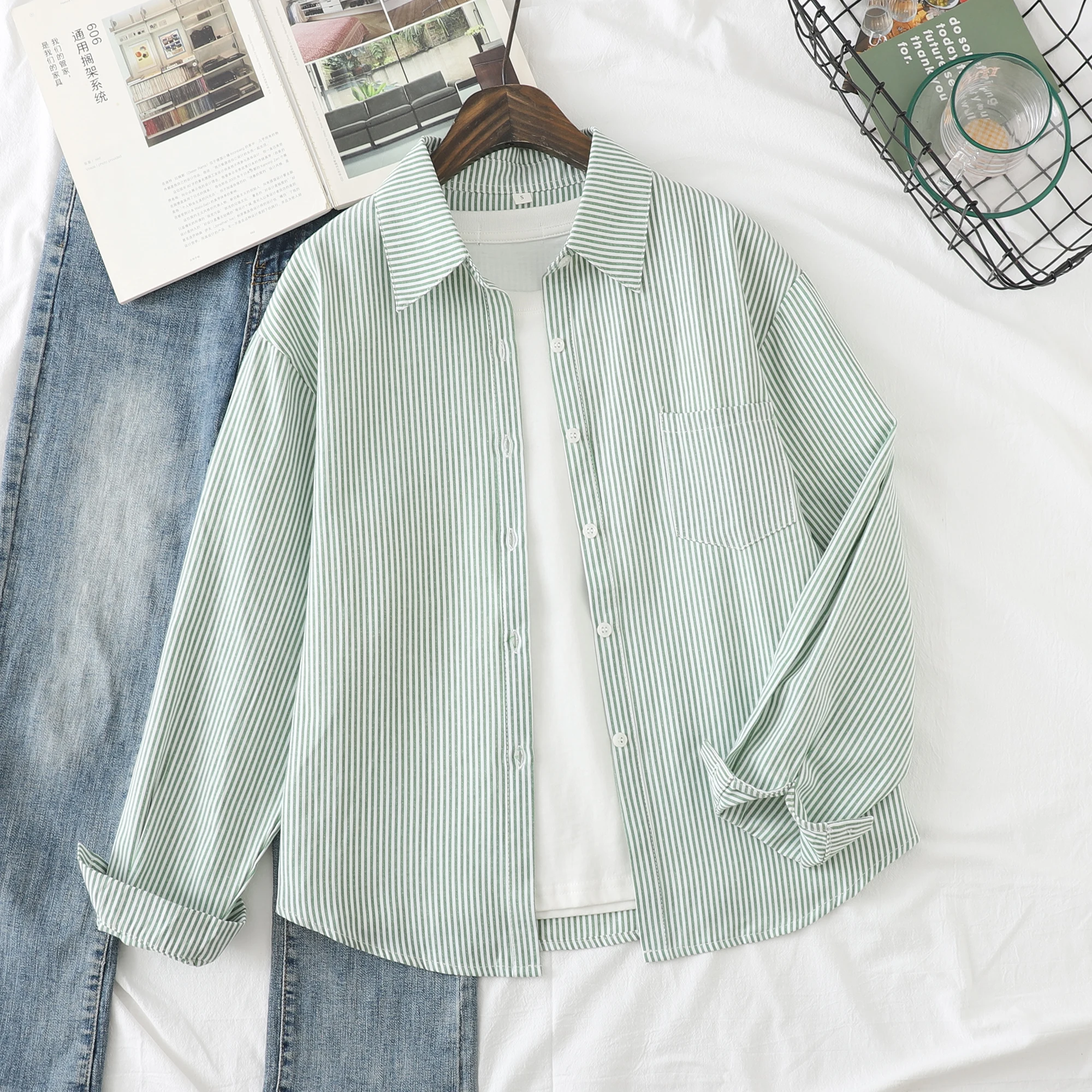 Einfache weiß blau rot gestreifte Hemd Frauen Frühling neue weibliche lässige Langarm Blusen und Tops Mode Damen Kleidung