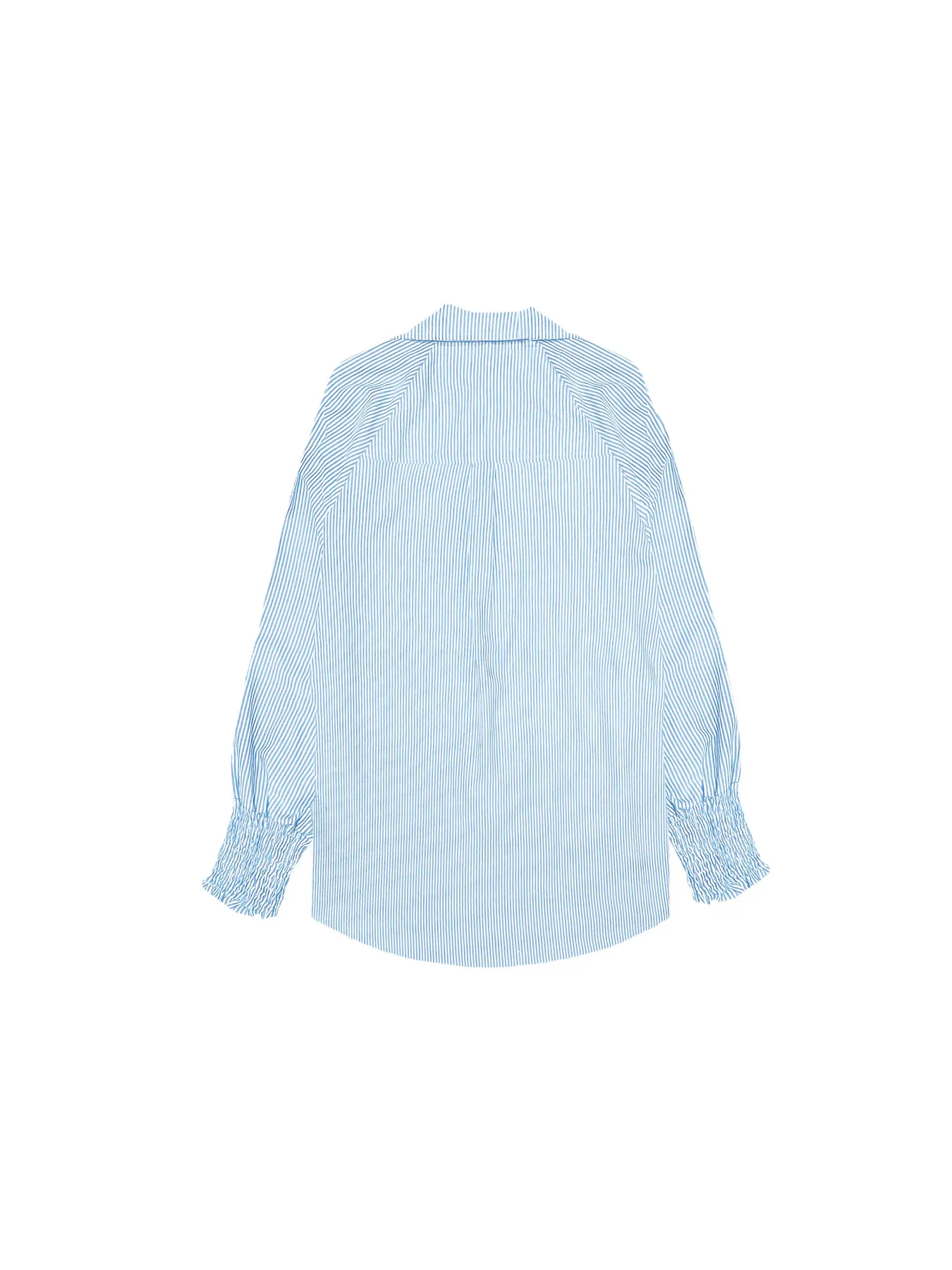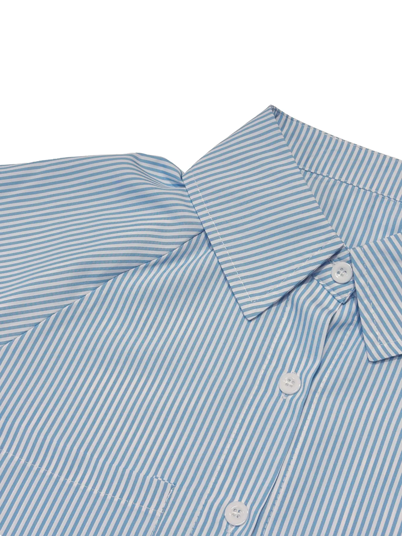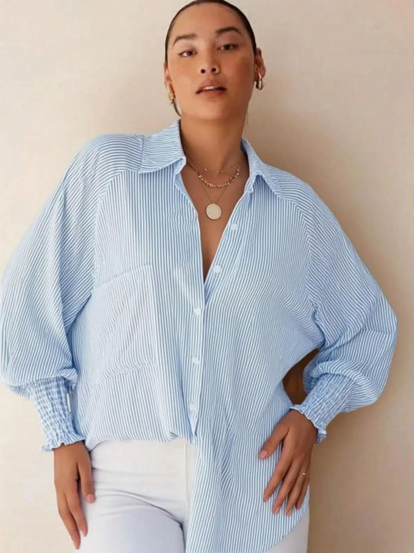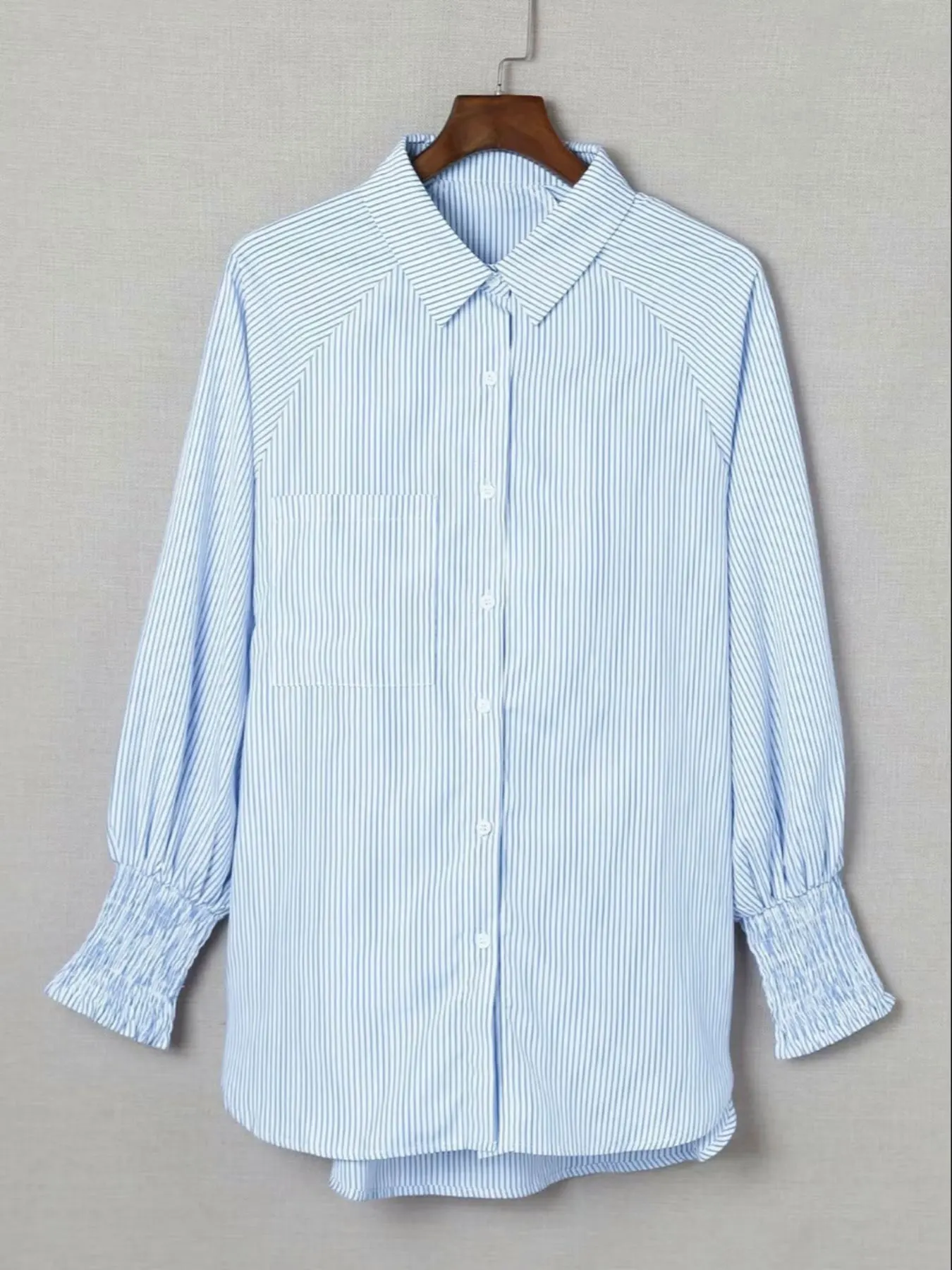 Gestreiftes bedrucktes Hemd mit Knopfleiste vorne, Taschen und Bündchenärmeln, lässiges Oberteil, geeignet für den Alltag und den Urlaub, Damenstil