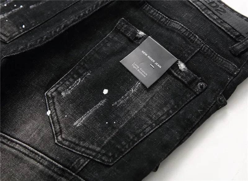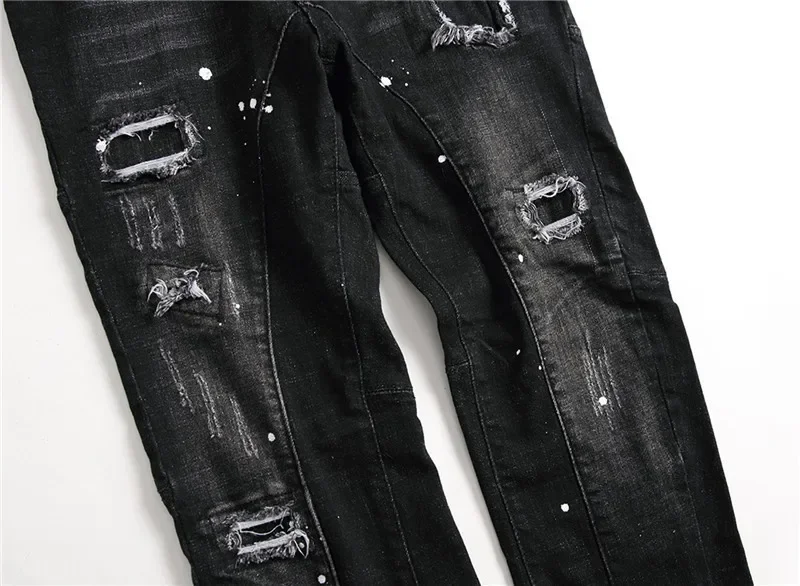 Jeans Männer Lange Bleistift Hosen Denim Hose Hohe Taille Slim Fit Einfache Zipper Splice Casual Regelmäßige Herbst Winter Gerade Hosen