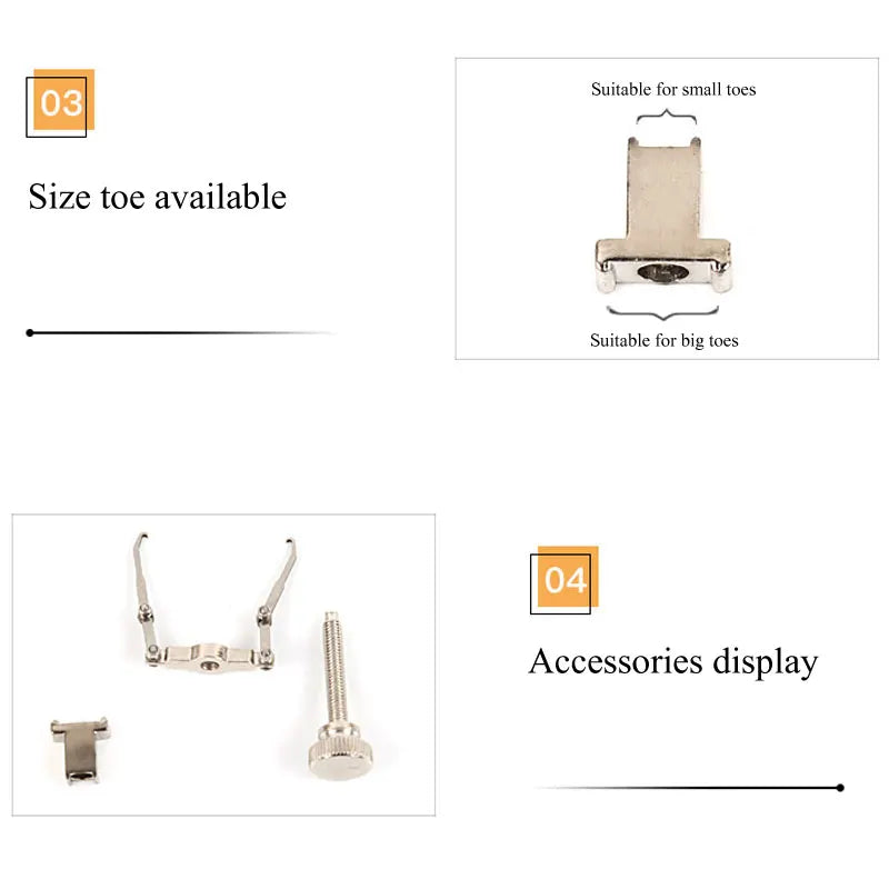 3.Halten Sie mit einer Hand den mittleren Drehpunkt des Werkzeugs fest und drehen Sie die Mutter, um das Gerät mit der anderen Hand am Zehennagel zu befestigen.(Abstieg in zwei Richtungen für unterschiedliche Nagelgrößen) Intensivieren Sie es langsam, bis ein Gefühl der Ausdehnung entsteht.