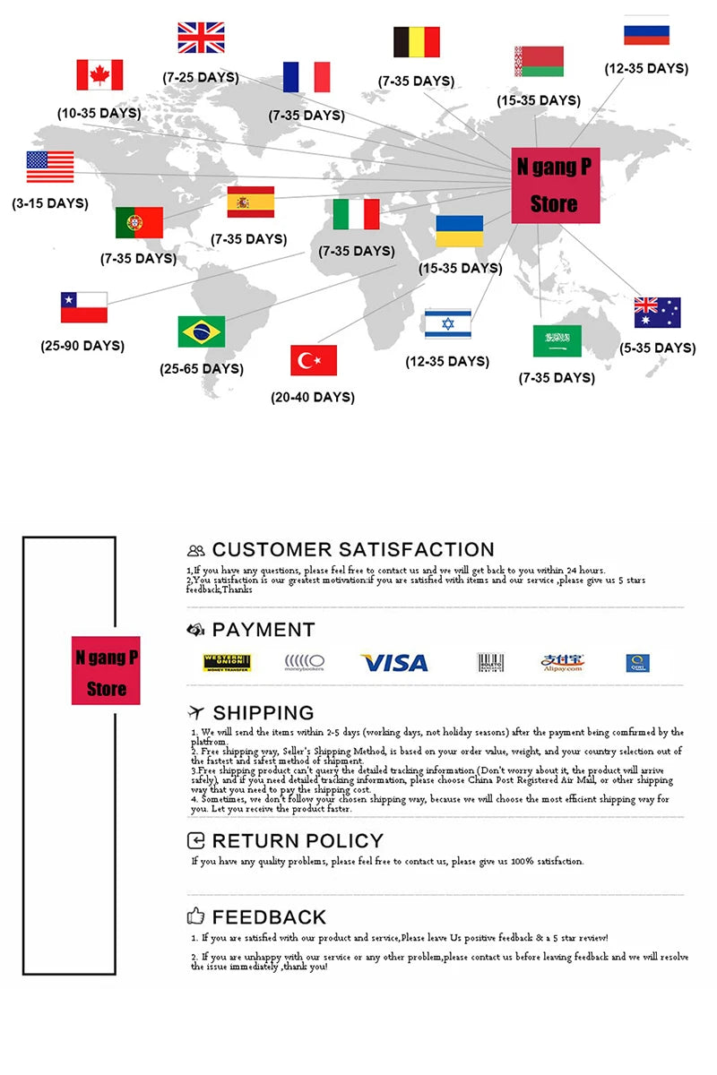 1.Aufgrund des unterschiedlichen Monitor- und Lichteffekts kann die tatsächliche Farbe des Artikels geringfügig von der auf den Bildern gezeigten Farbe abweichen.Danke schön!