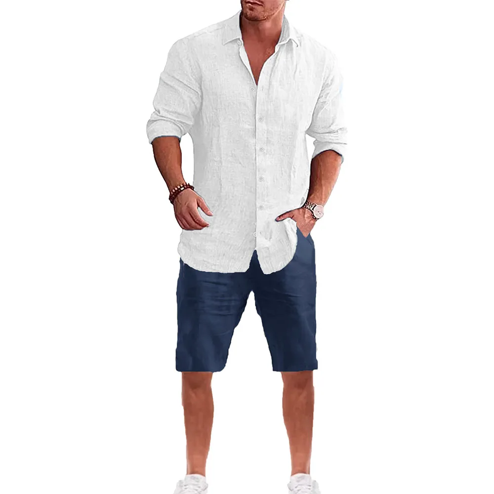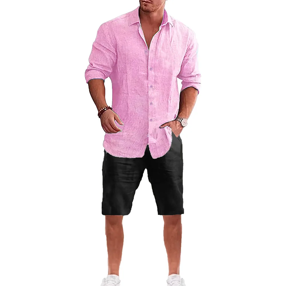 Männer Langarm Hemd Anzug Casual Einfachen Stil Revers Kragen Leichte Atmungsaktive Outfit Männliche Mode Sets Frühling Sommer
