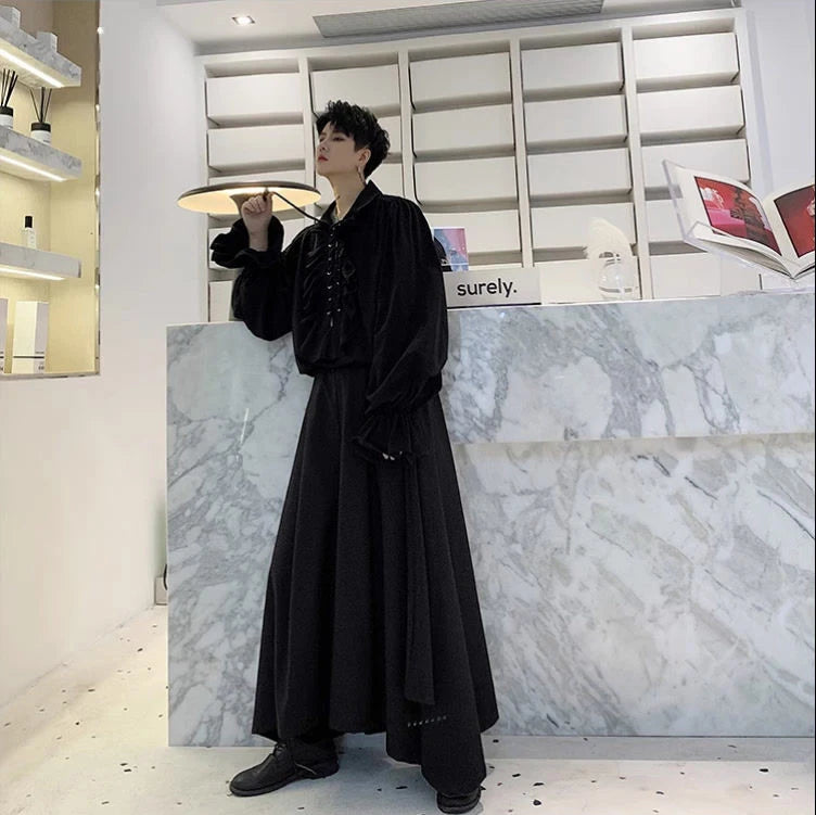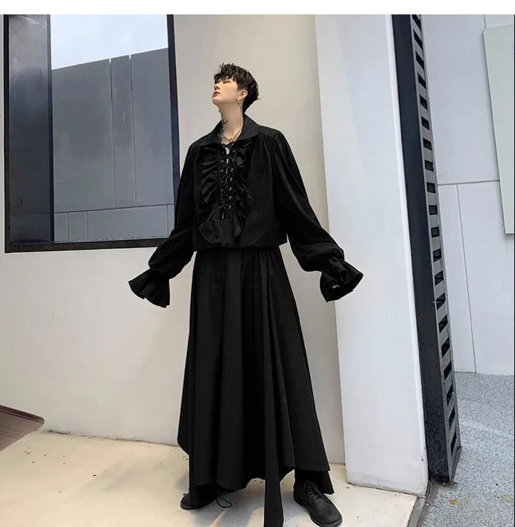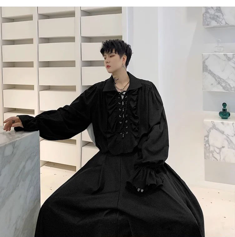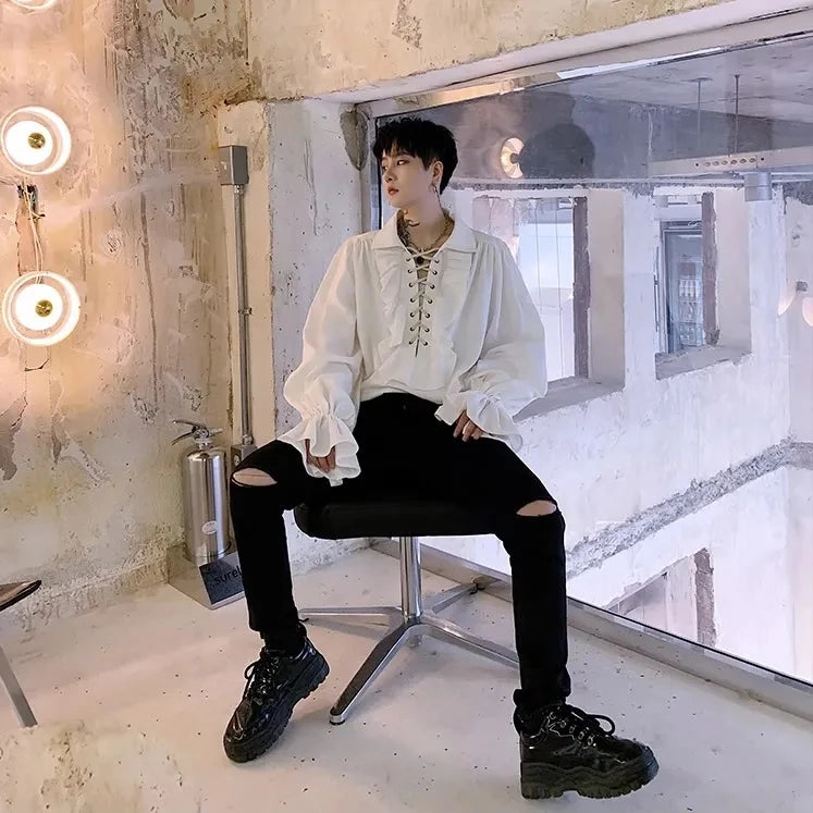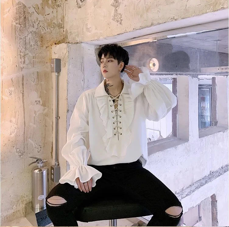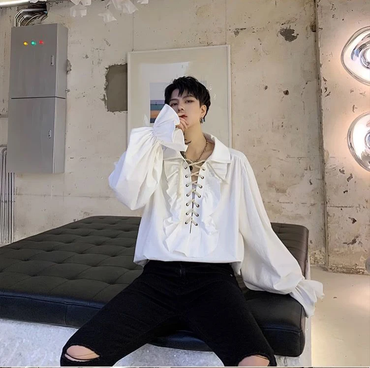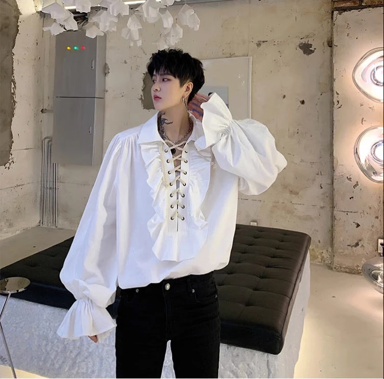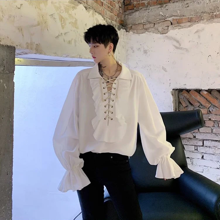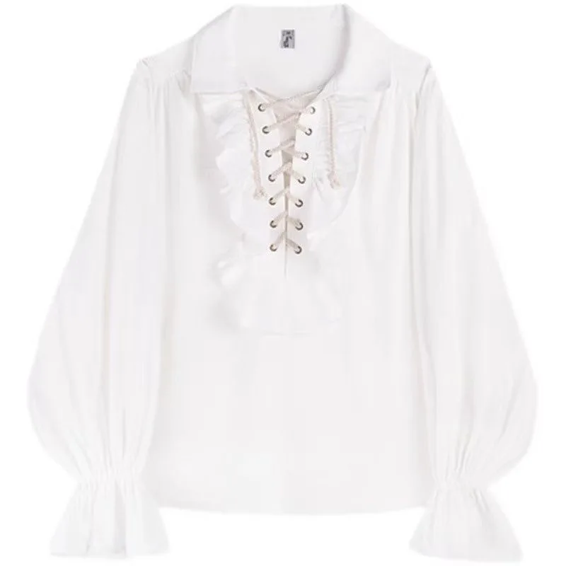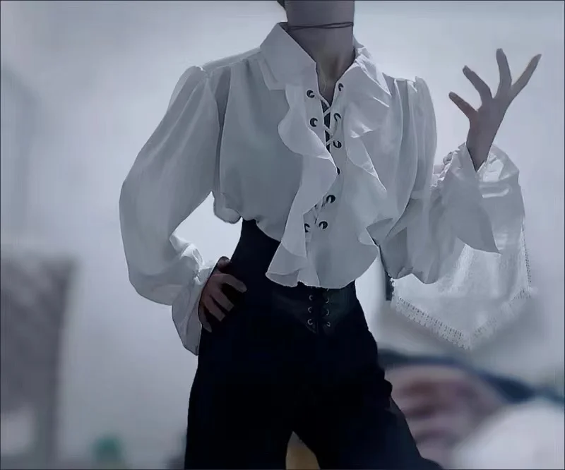 Piratenhemd für Herren, Vintage-Gothic-Renaissance-Stil, Rüschen, Schnürung, mittelalterliches Buccaneer-Blusenoberteil für alle Jahreszeiten