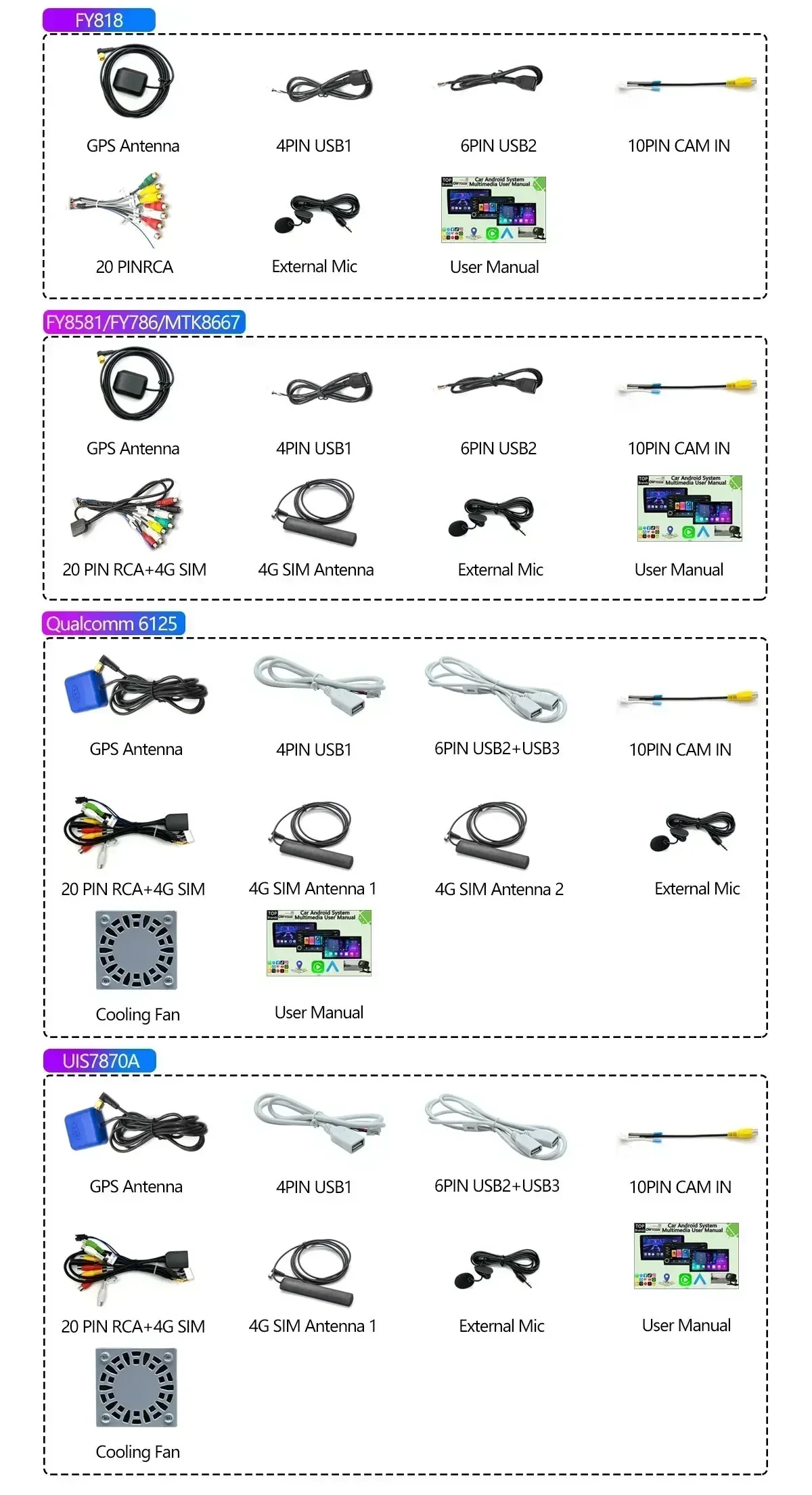 Zubehörtyp: Power Harness+USB Cable+GPS/4G Antenna+AHD Rear View Camera+RCA Cable