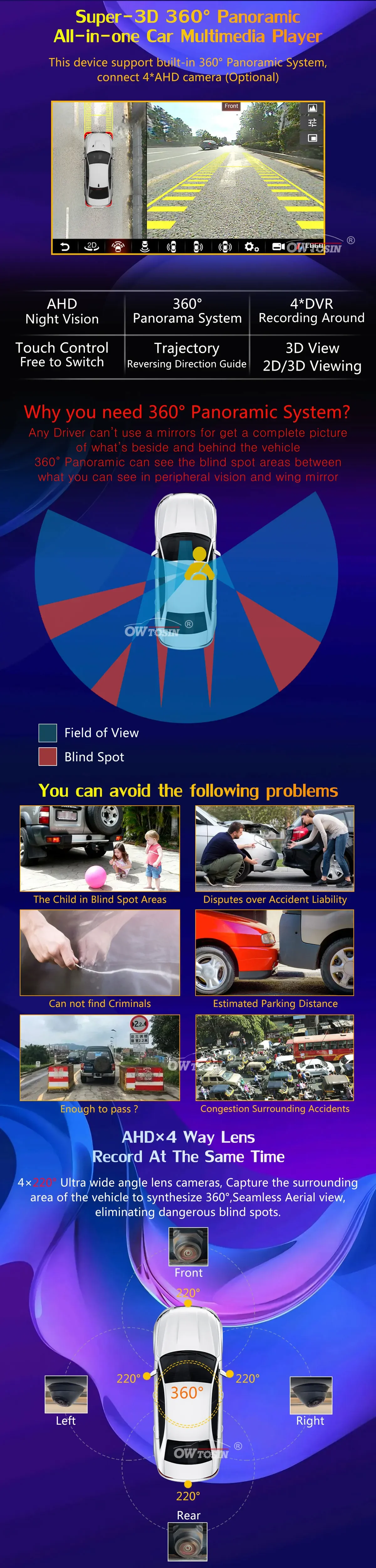 MT8667:8Core 64Bit 6G+128G 4G LTE/WiFiInternetDSP CarPlay2USB 360 Panoramakamera optional