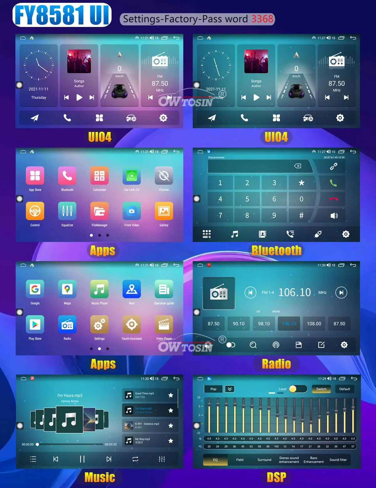FY818:4Core 32Bit 2G+32G WLANInternetDSP CarPlay2USB