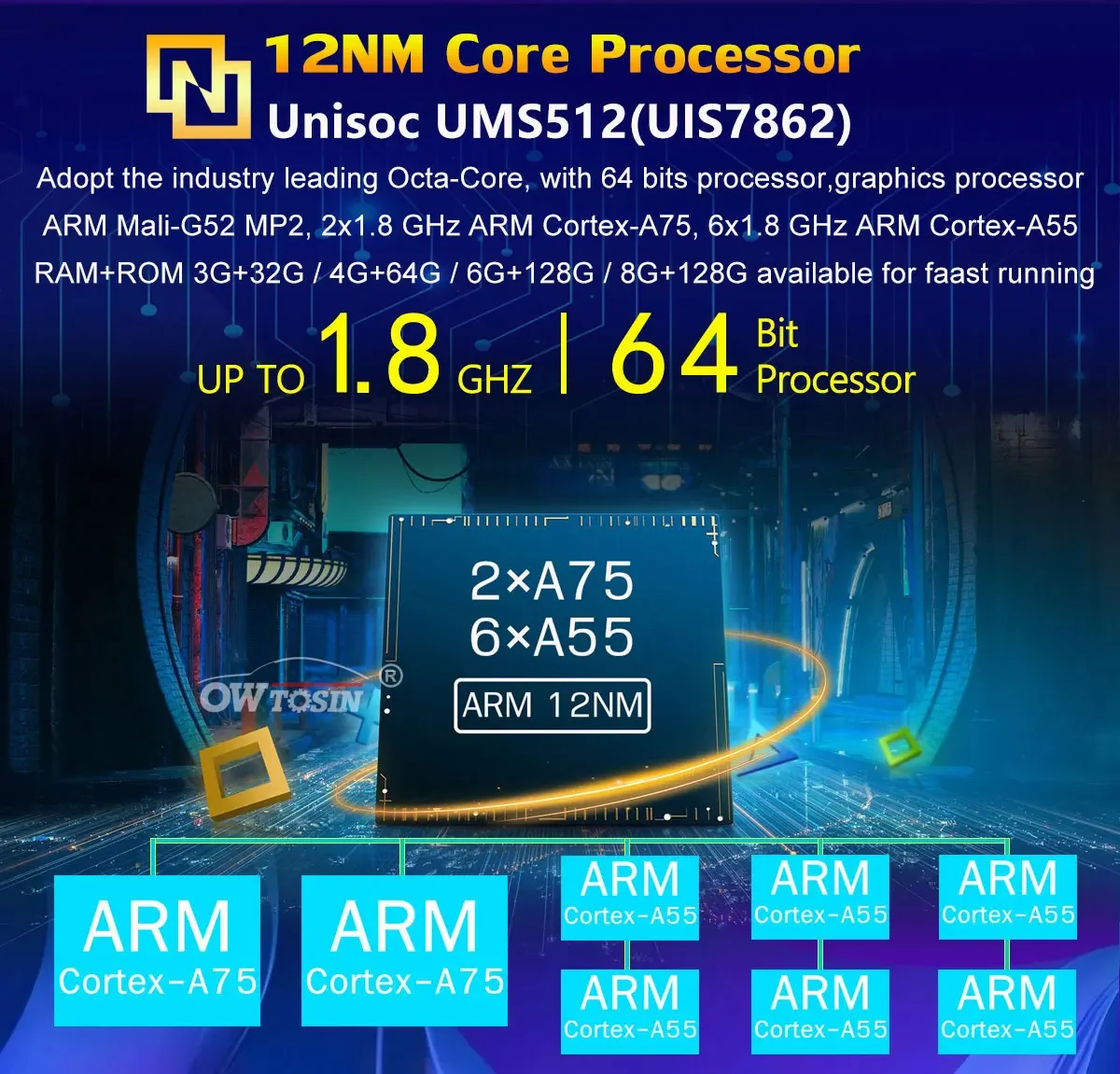 CPU 3: UIS7862A 2*Cortex-A75 1.8GHz 6*Cortex-A55 1.8GHz