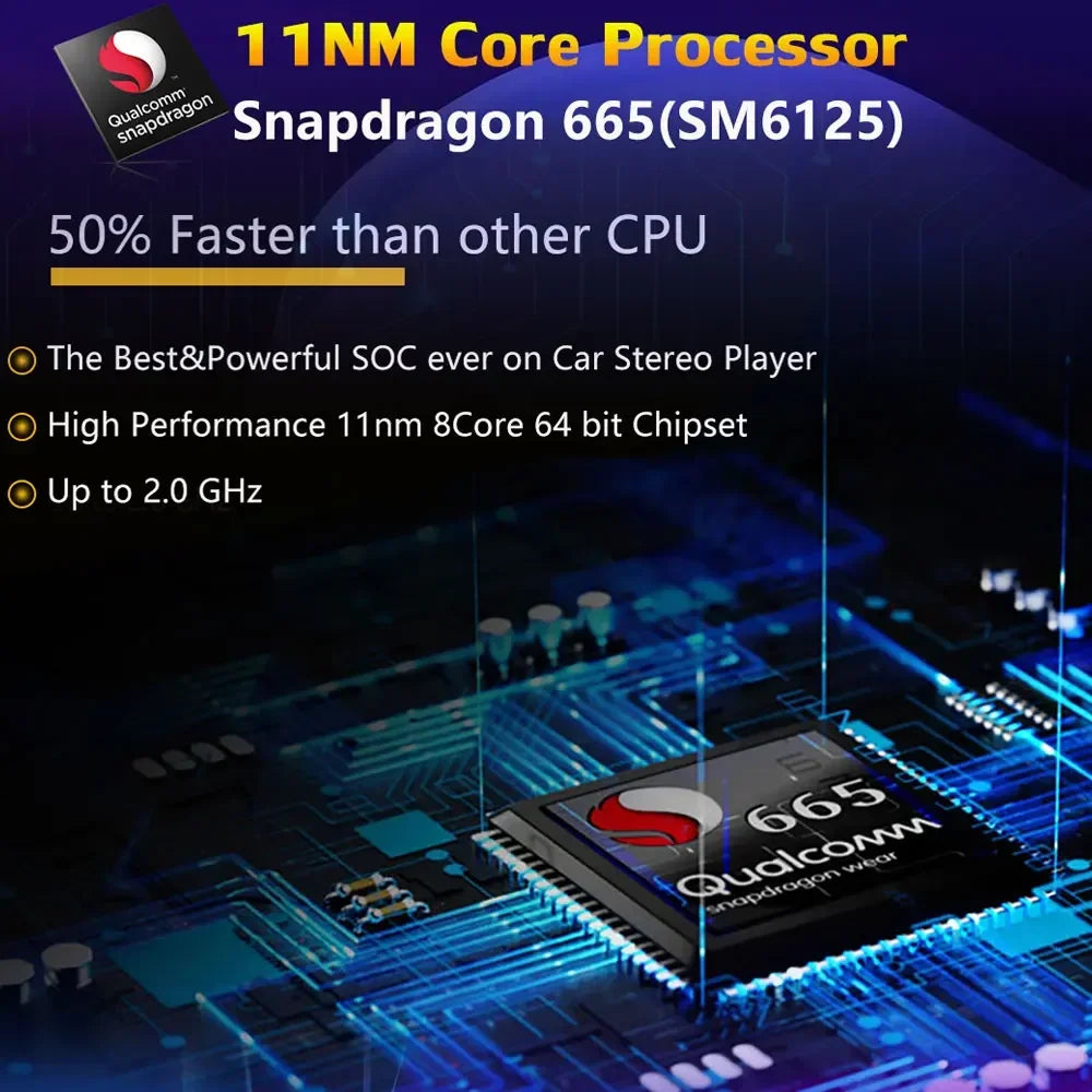 Qualcomm Snapdragon665: SM6125 8Core 64Bit 4G+64G/6G+128G/8G+256G 4G LTE/WiFi Internet HDMILüfter DSP CarPlay 3USB
