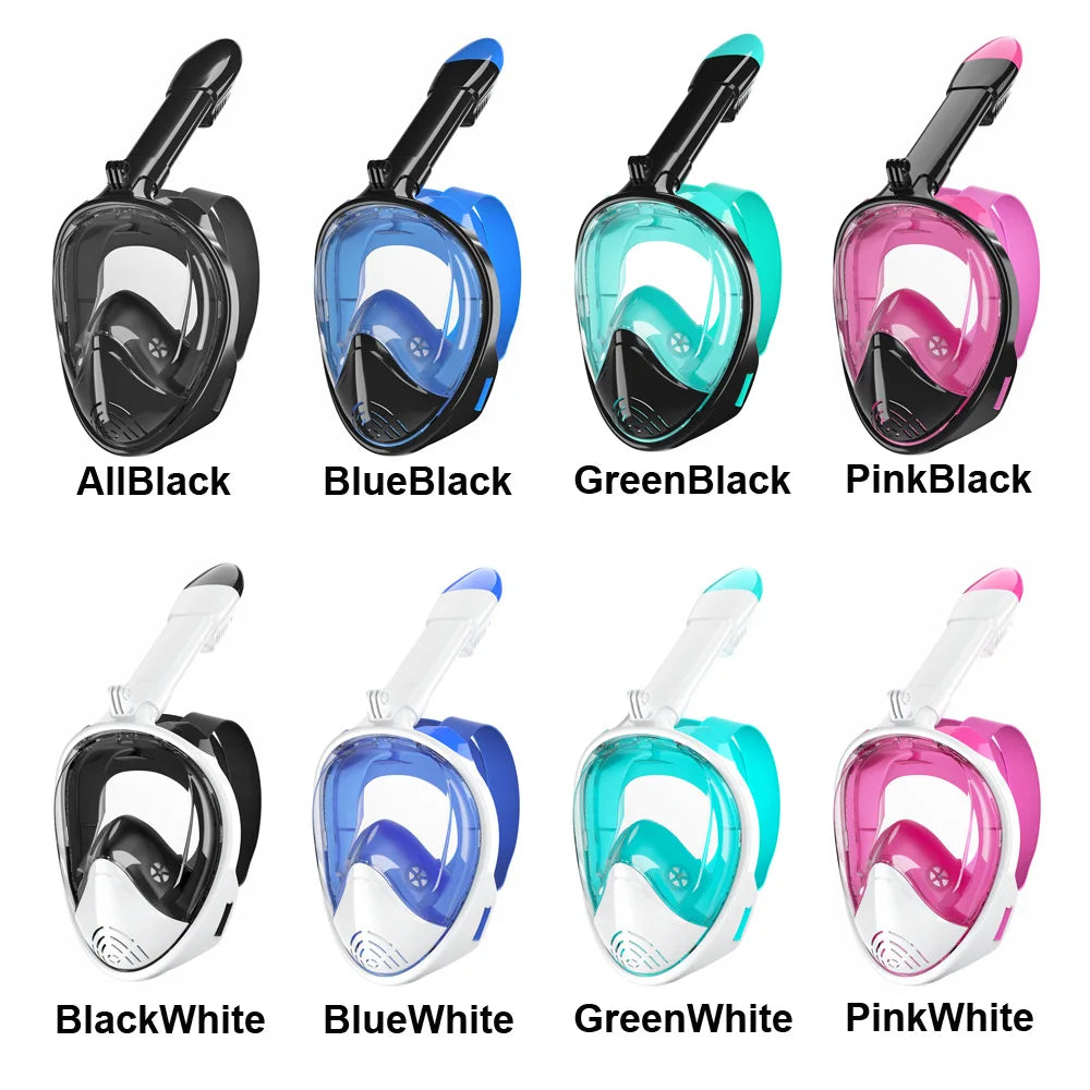Vollgesichts-Schnorchelmaske, Silikon-Tauchmaske, voll trocken, Panorama, mit Kamerahalter, großer Rahmen, Schwimmbrillen-Set für Erwachsene