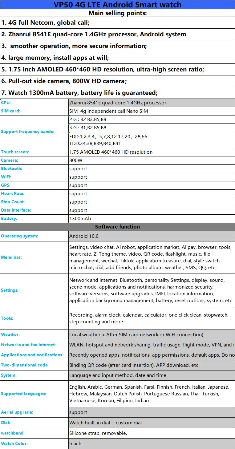 VP50 4G LTE Android Smartwatch |