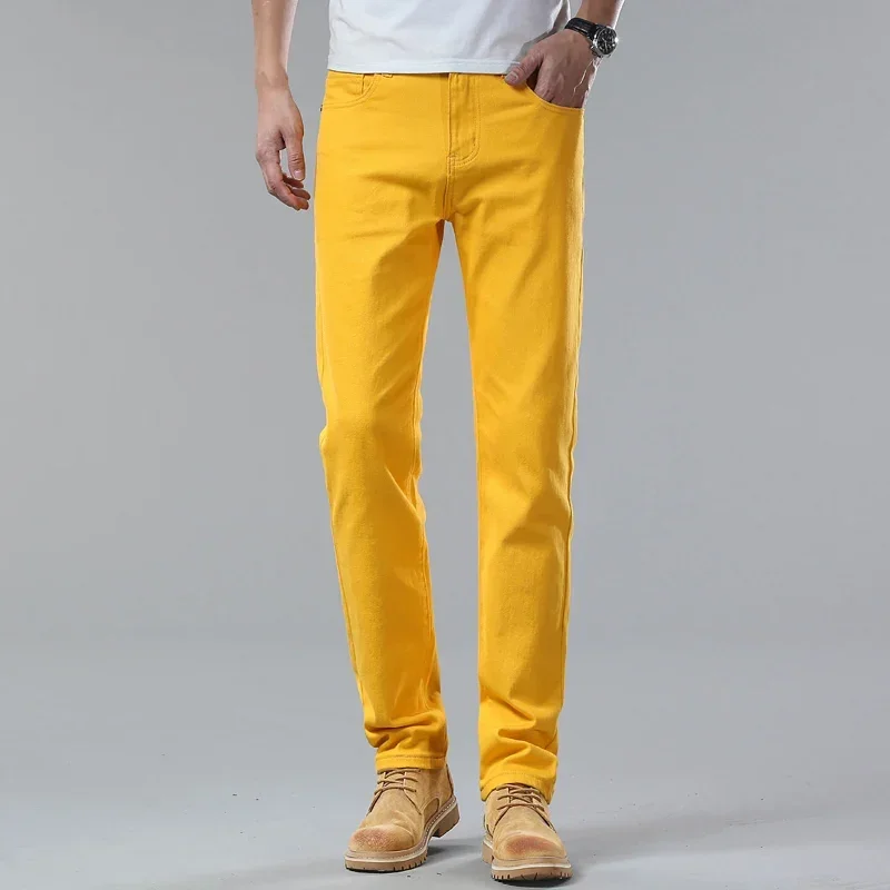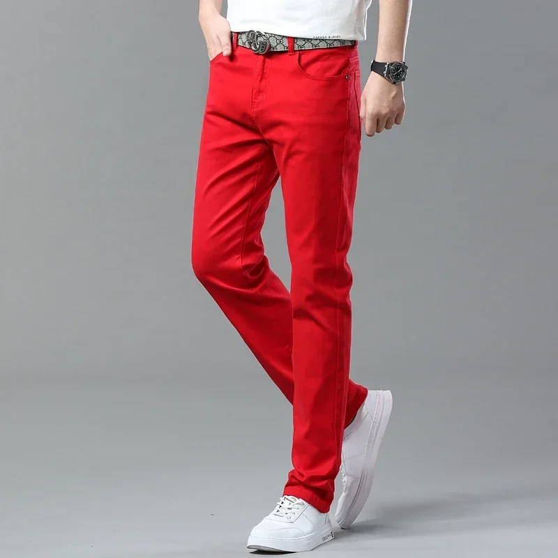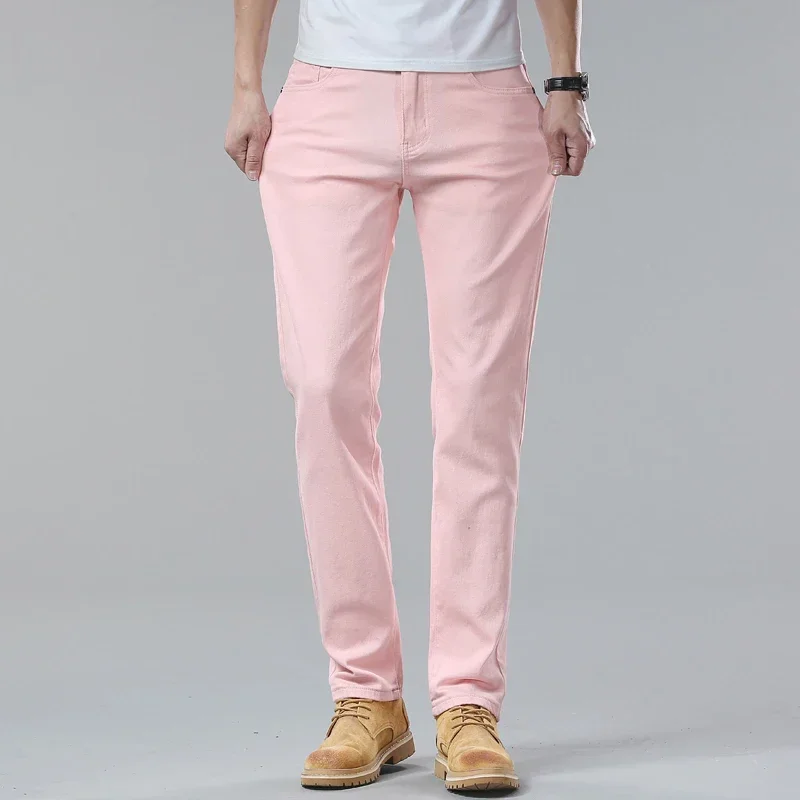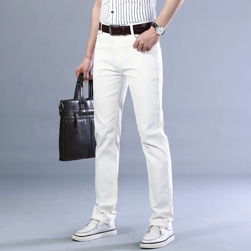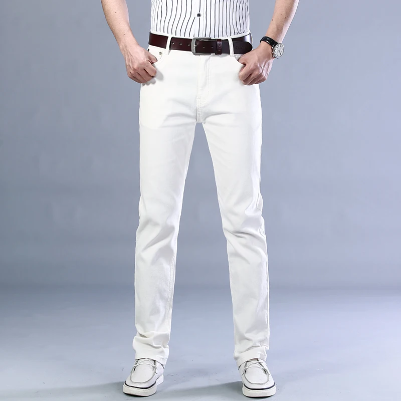 Weiße Jeans Herrenmode Gerade Elastische Baumwolle Denim Hosen Frühling Herbst Allgleiches Business Casual Hosen Männliche Kleidung